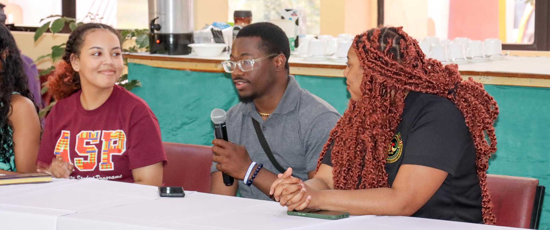 George in a question-and-answer session with leaders in Guyana.
